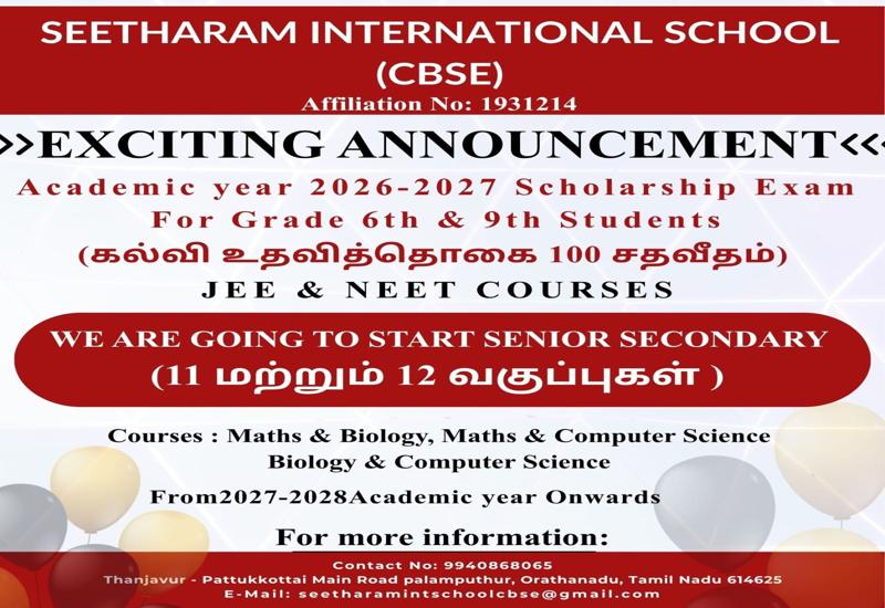 Seetharam International School was established in 2016 and it is a secondary school. It is an international school situated in the 24 km south of Thanjavur town.